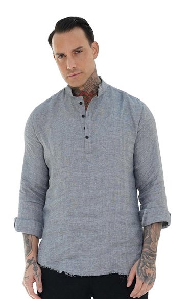 Linen Blend Band-Collar Shirt – C.13 Grey – Πουκάμισο